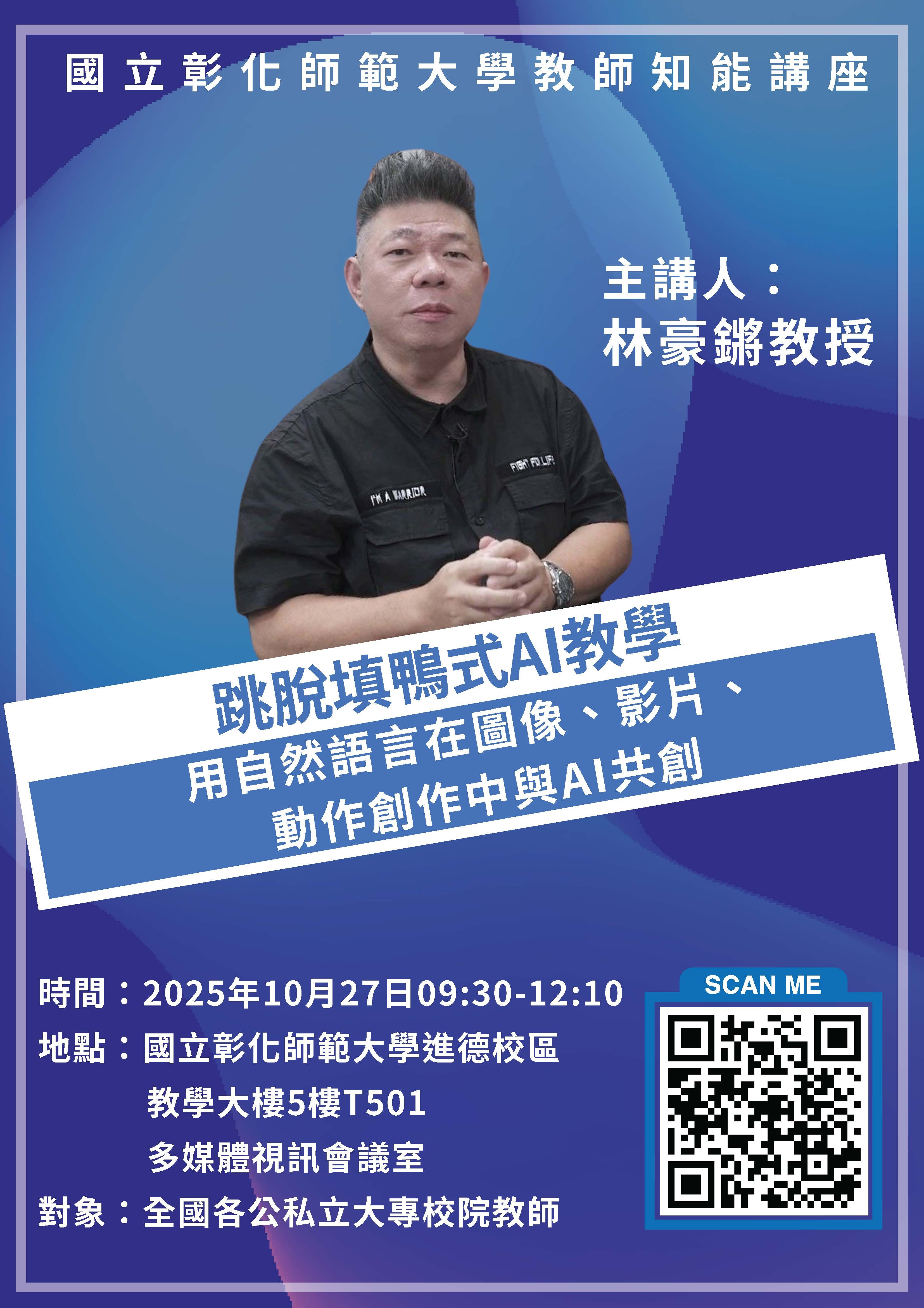 (一)講座主題:跳脫填鴨式AI教學:用自然語言在圖像、影片、動作創作中與AI共創
