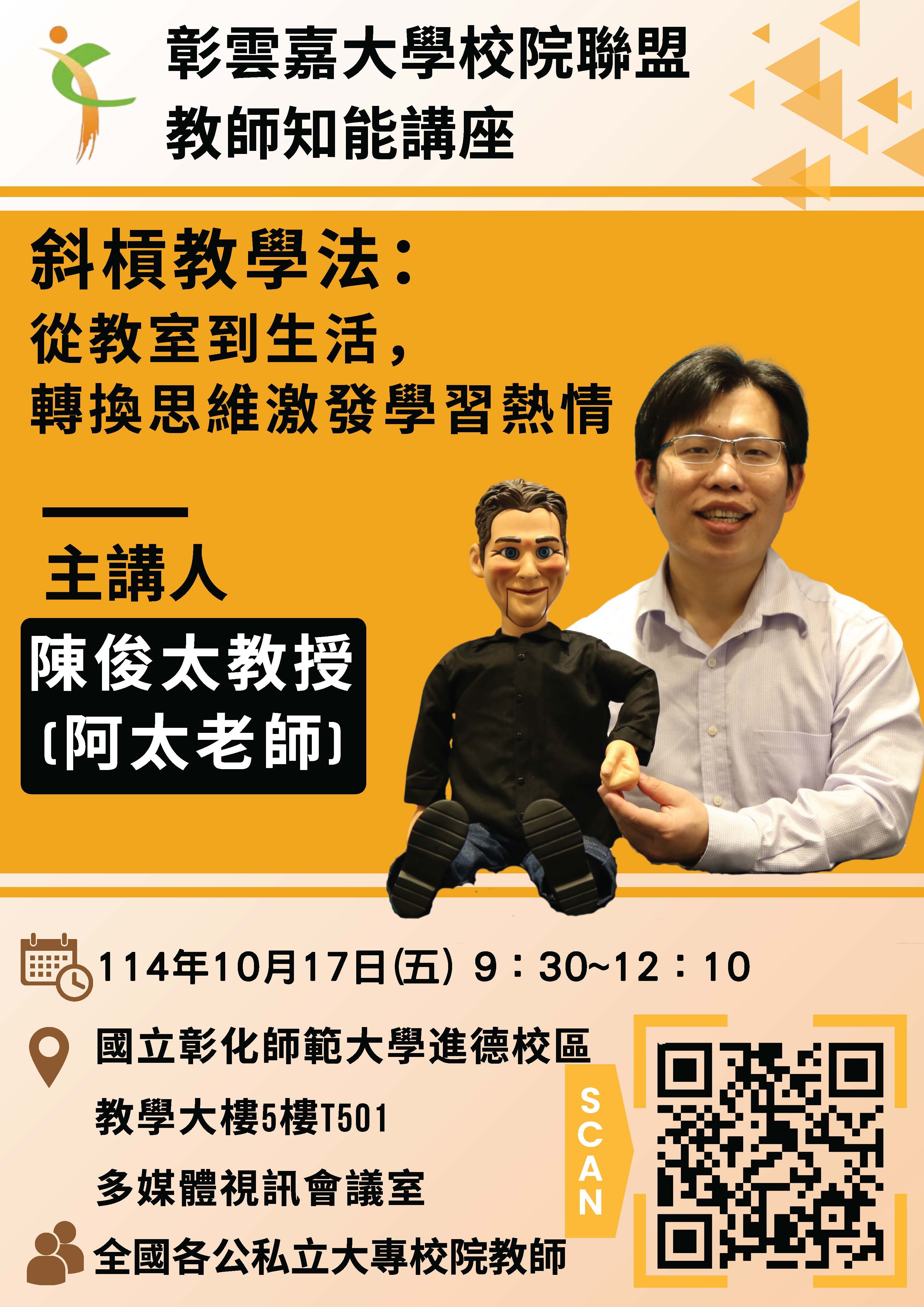 【轉知】彰師大辦理二場114年教師教學知能成長講座活動,歡迎報名參加