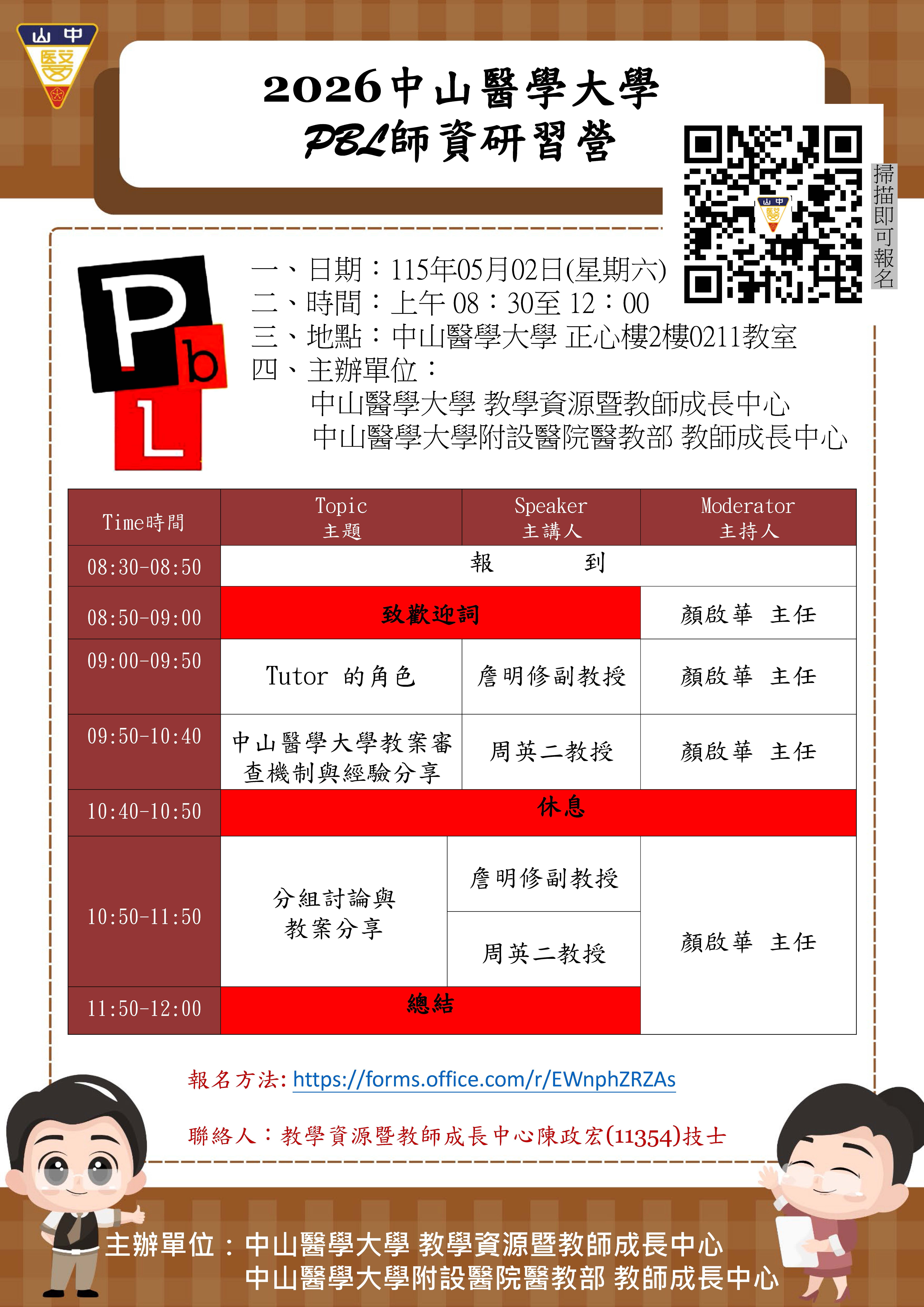 【轉知】中山醫學大學辦理「2026中山醫學大學 PBL師資研習營」,歡迎報名參加